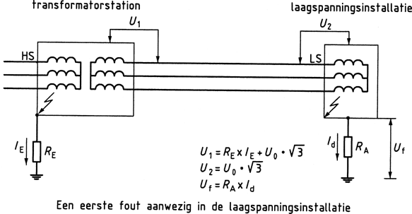 Dezelfde voorwaarden zijn van toepassing bij een laagspanningssysteem waarbij de nulleiding niet is geaard via de impedantie Z